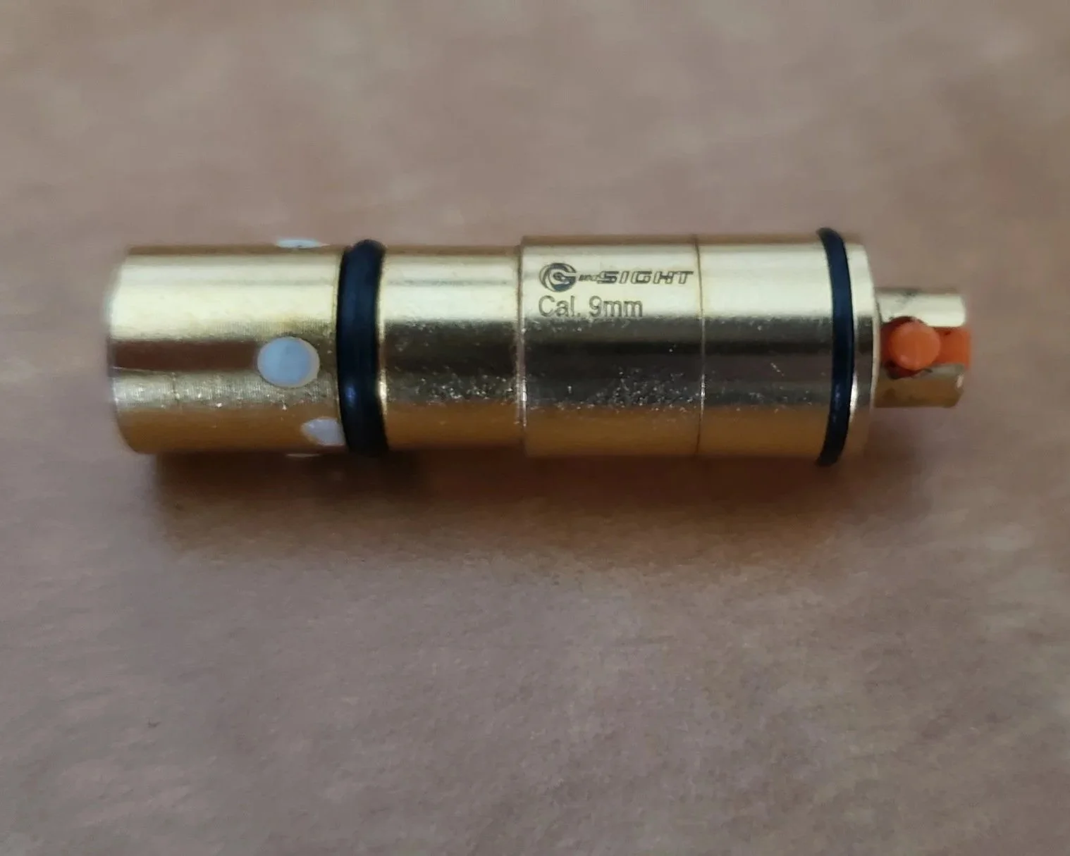 A laser training bullet, like the G-Sight Quantum, is a laser pointer that is only activated when the tail of it is struck by a firing pin. The one shown in the picture is simply dropped into the chamber and pushed in. The rubber O-rings maintain a consistent pressure on all sides of the laser trainer, and allow it to maintain near perfect alignment with your bore.