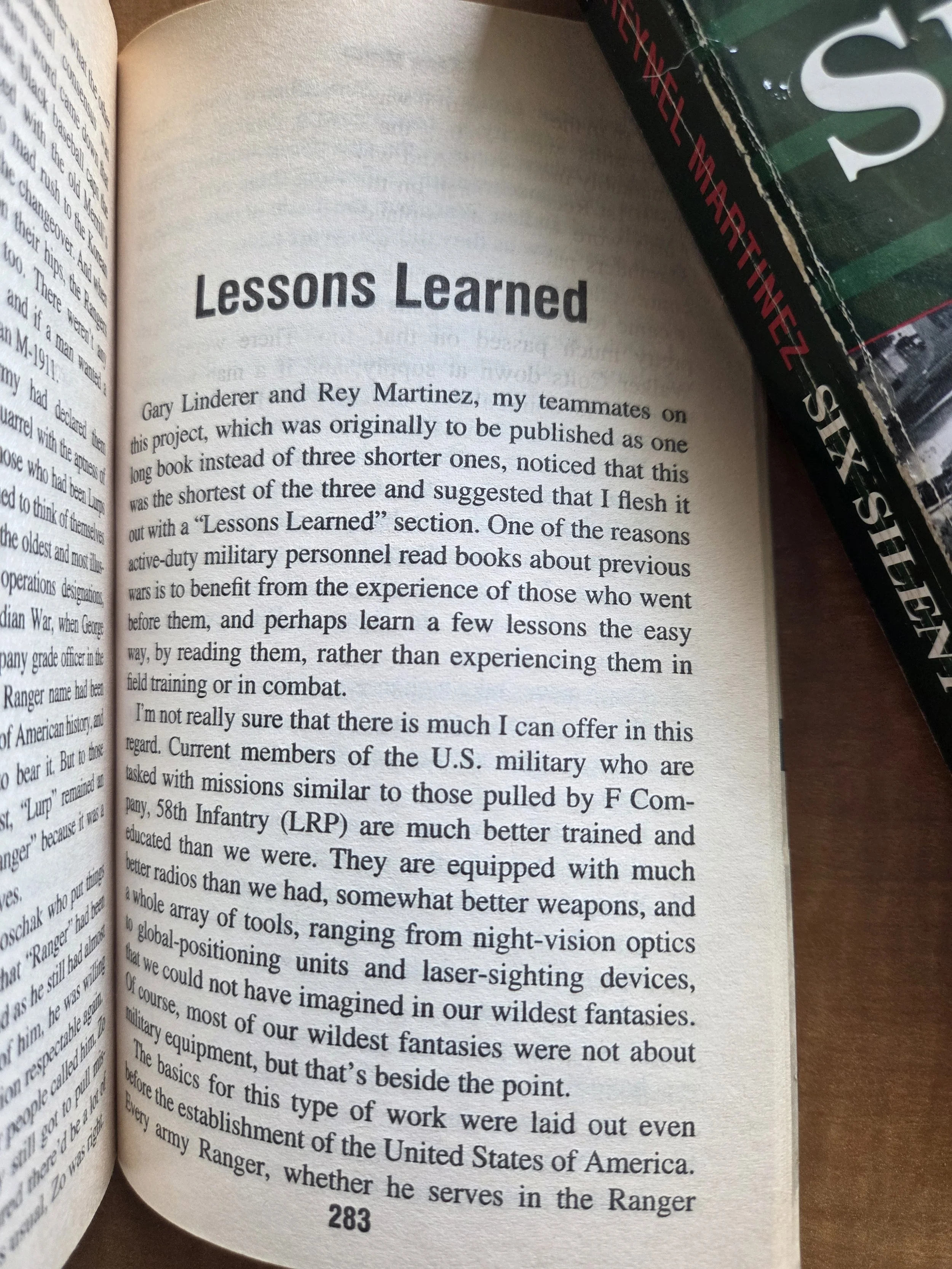 At the end of the book, Kenn provides a list of lessons learned and links his experience about Rogers Rules of Ranging and how they were applied in Vietnam as a LRRP. To tactical nerds like myself, I am all about looking at lessons learned, so this was pure intellectual porn for me.