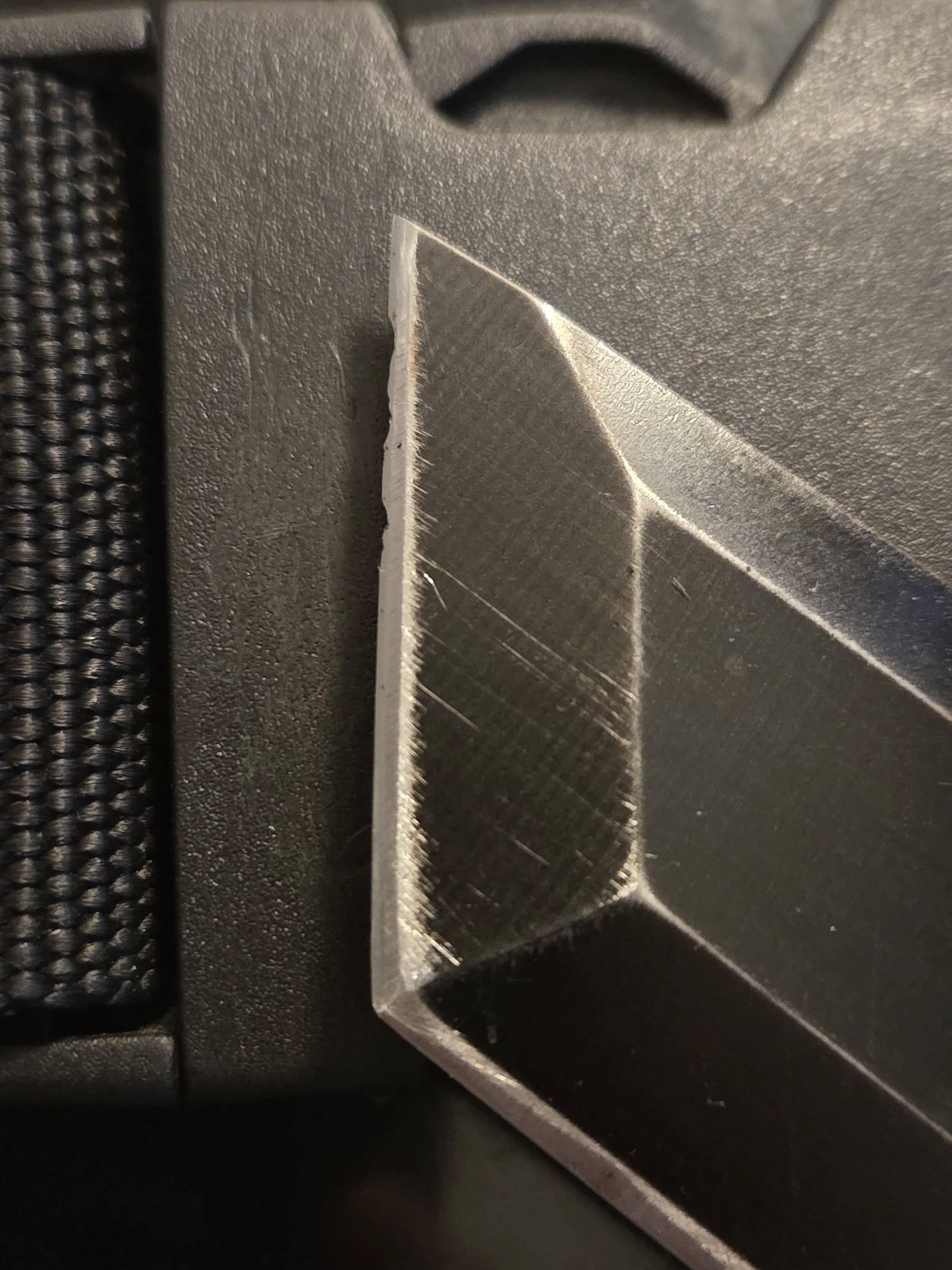 After extensive testing and use on my PSA 20” and Springfield SA-16 A2 rifles, I found the blade to be very capable. I used a bunch of spare wood I had from construction sites as my test medium, and I accidentally hit the tip of the blade on a deck screw that I used to screw a board to my fence posts. This deformed the blad only slightly, which was surprising with how hard I thrust the bayonet into the board. All I had to do was use a medium-coarse sharpening surface to redirect the edge and get it fixed. Now the tip just has a slight serration to it.